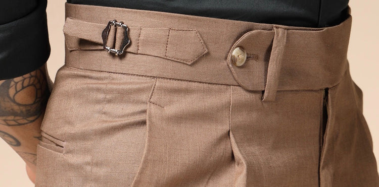 Khakhi Formal Pleated Linen Gurkha Pants | Boot Cut Fit by Italian Vega®