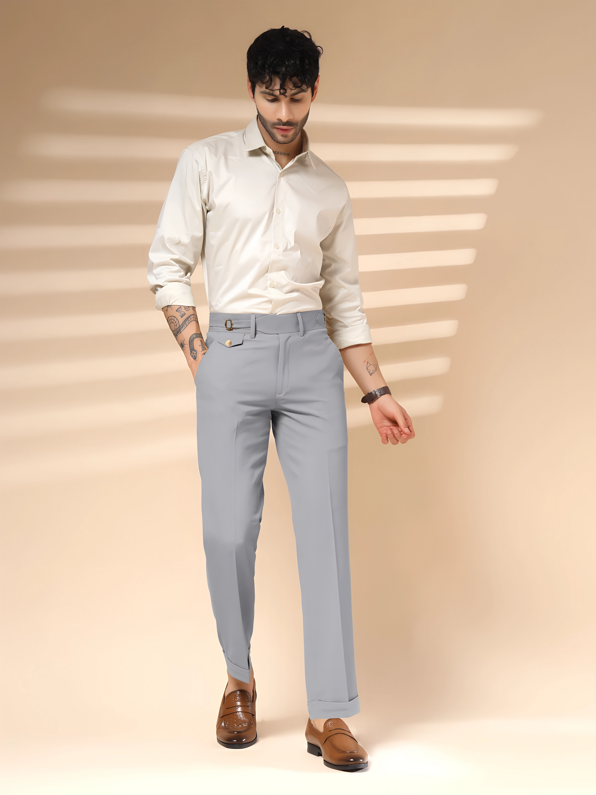 Ash Grey Single Buckle Formal Gurkha Pants by ITALIAN VEGA®