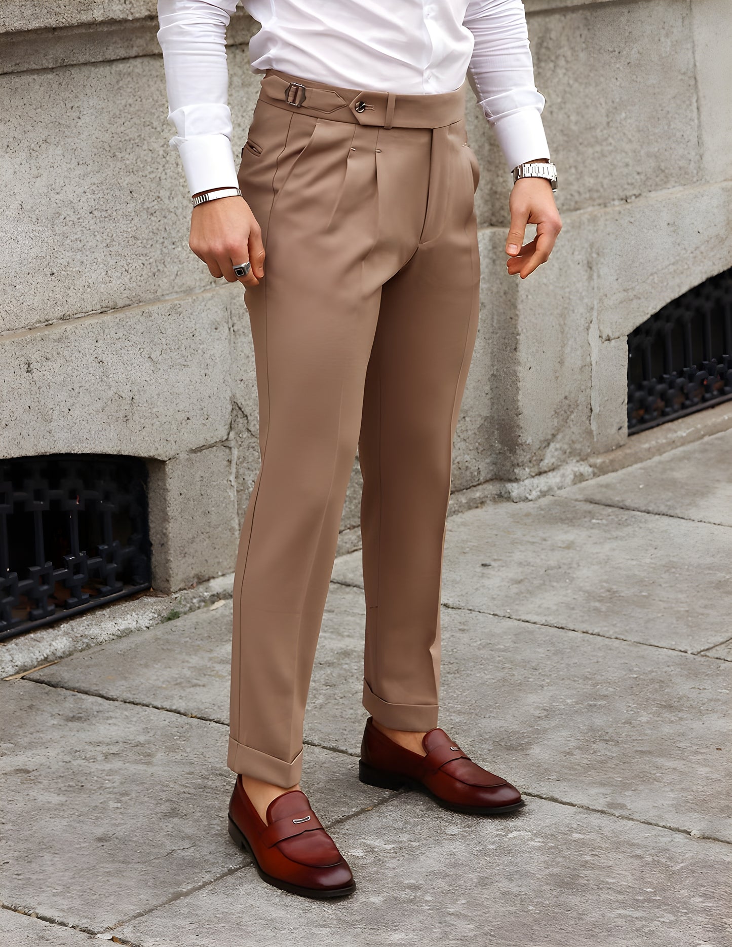 Invest in our Italian Camel Signature Gurkha Pants and experience the ultimate combination of comfort and style.